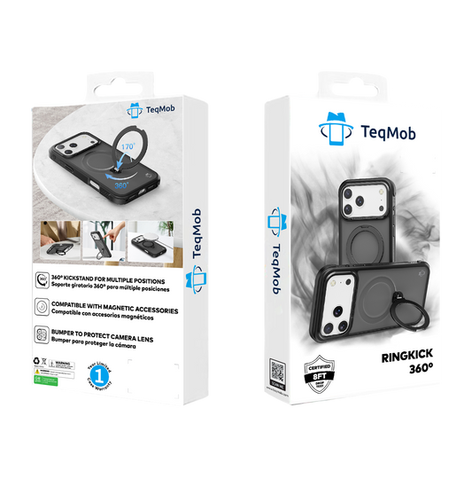 Sleek and strong, the RINGKICK 360° Carbon delivers premium protection with a bold edge. It features a kickstand with full mobility to ensure you have several different angles in which to support your phone.