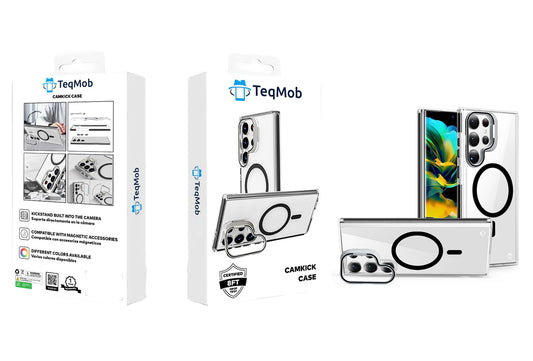White Camera Kickstand Case with Magnetic Compatibility for Samsung Galaxy S25 Plus with package