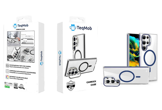 Clear Blue Frame Kickstand with Magnetic Compatibility for Samsung Galaxy S25 Plus with package