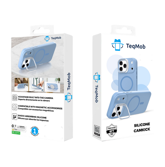 Light Blue Silicone Camera Kickstand with Magnetic Compatibility for iPhone 17 6.1