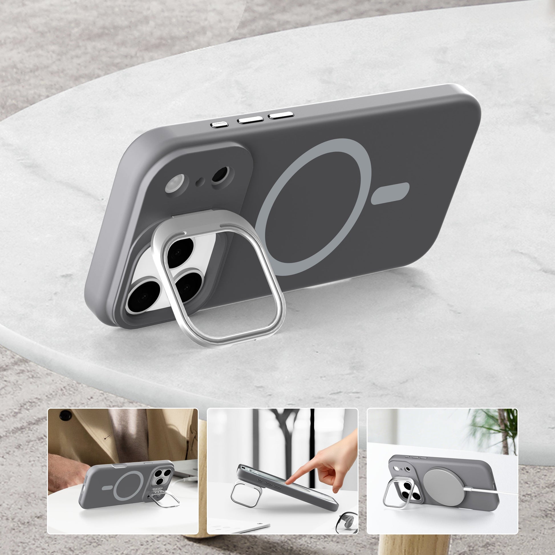 Gray Silicone Camera Kickstand with Magnetic Compatibility for iPhone 17 Air