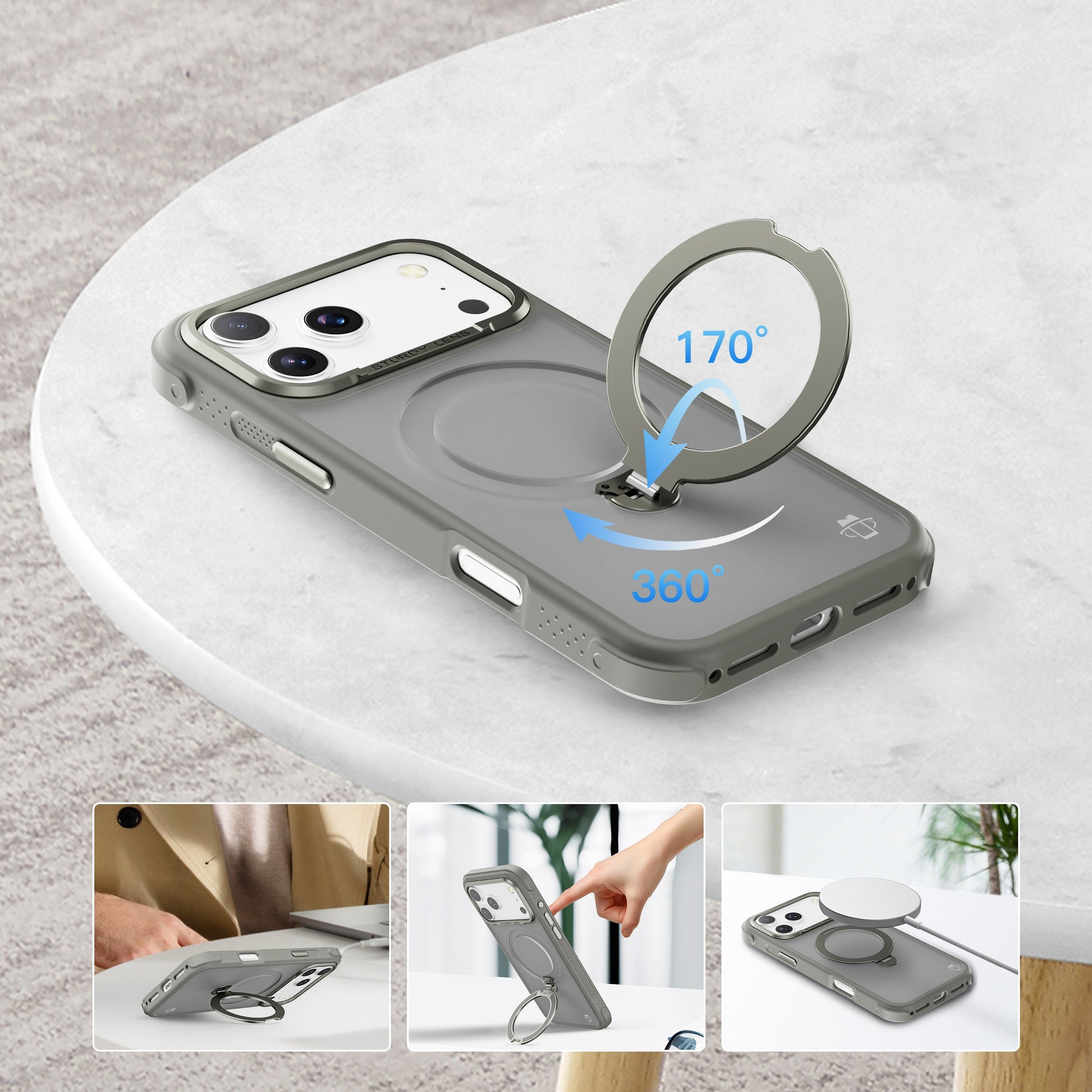 - 360° Rotating Kickstand: Built-in ring stand rotates fully for flexible viewing in both portrait and landscape modes.